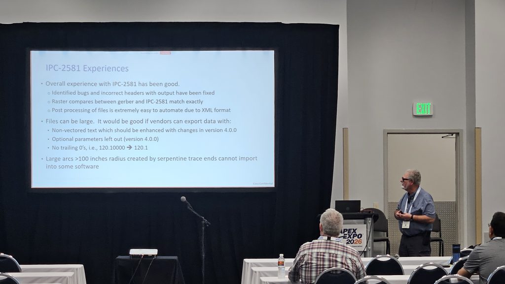 Terry Hoffman shared Cisco’s experience in moving to IPC-2581 from Gerber based packages. He mentioned the key reason to move to IPC-2581 was ensuring that their IP is not stolen from the PCB Manufacturing supply chain companies.